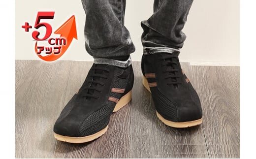 メッシュスニーカー 本革 レザー カジュアルシューズ 5cmアップ シークレットスニーカー No.994 ブラック 23.5cm [№5990-8565]0414