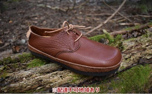 YAMATOismのポリシー「丁寧につくること」はそのままに「心が豊かになる暮らし」「永く寄り添う」というサスティナブル(持続可能)な暮らしをブランドテーマにした革の柔らかさ、履き心地にこだわったボタニカルタンレザーシューズ。表革は原皮に日本の食用赤牛を使用しミモザの植物性タンニンで鞣したエコレザーを使用。裏革を使わず表革のみの構造でしっとり柔らかな質感が直接足に感じられるのが特徴。インソールの表面には奈良県菟田野でタンニン鞣しされた鹿革を使用し吸湿性に優れている。底材は生分解性樹脂と天然ゴムを使用し自然界に還る。外装箱は引き出し型で小物などの収納箱としても利用可能。靴の包み布に奈良の蚊帳生地で作られた布を使用し靴のお手入れクロスとして利用可能。靴紐に革紐を使用。爪先が足型形状(オブリーク)なのでゆったり履ける。なのでサイズ感はやや大きめ。