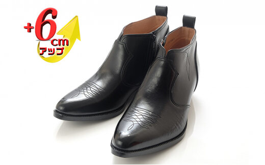 ウエスタンブーツ メンズ サイドファスナー カウボーイ ショート 6cm シークレットブーツ 本革 No.888 ブラック 25.0cm [№5990-5450]0542