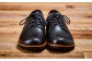 ダービーと呼ばれる外羽根式デザインの靴を、人の足形に近づけたオブリーク木型でつくった靴です。足指あたりの幅があり、甲周りにゆとりを持たせたこの木型で幅広の足の方でも履き易い靴に仕上がりました。 蝋(ワックス)を染み込ませ、揉み仕上げした革をライニング(裏張り)をせずに使っています。履き込むと柔らかく馴染み、シワや色の濃淡が生まれ、風合いが増します。