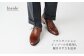 『ナローなフォルムの日本製ドレスシューズ』奈良県大和郡山製のドレスシューズ。程よい光沢感で厚みのある牛革を使用しています。またマッケイ製法という底面と中底面を縫い上げる伝統製法を採用しているため、屈曲性、耐久性があり軽量です。中底前足部には柔らかいクッションが入っていて履き心地にもこだわっています。デザインはサイドレースアップタイプ。サイズの目安はスニーカーのサイズから0.5cm~1cm下、革靴のサイズからは表示サイズ相応。ワイズは2E相当(細身)。 着用時はビジネス用の薄手の靴下を着用ください。