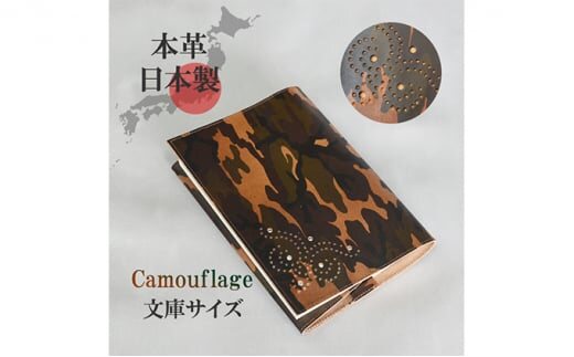 ブックカバー 文庫サイズ やわらか ソフト レザー 日本製 国産 天然皮革 本革 革小物 おしゃれ かわいい【カモフラージュ】 [№5990-0672]