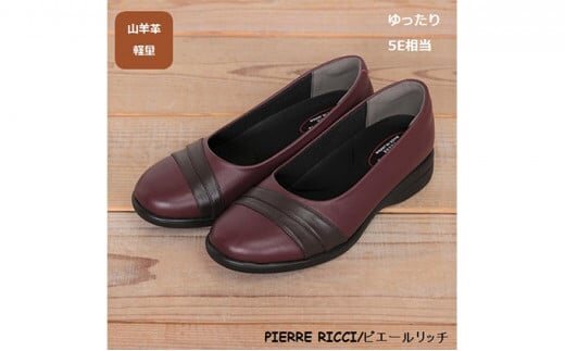 【PIERRE RICC】ピエールリッチ 山羊革ゆったり5Eレディースウォーキングパンプス ワイン 73(婦人靴) 25.0cm [№5990-6013]0688