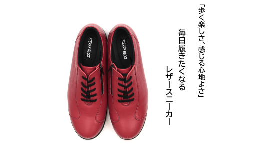 【ピエールリッチ】ファスナー付き 軽量 ソフト レザースニーカー レッド PR821(婦人靴) 24.5cm [№5990-6662]0825