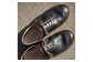 ドレス靴によく使われるデザインですが、靴紐を通す5対のハトメを長めに配して、個性的な姿としています。
