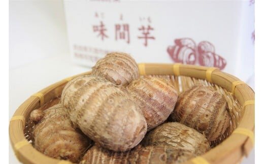 味間芋(あじまいも)はサトイモの在来種で、きめが細かくて粘りが強く、ねっとりとしたとろける食感とコクがあります。