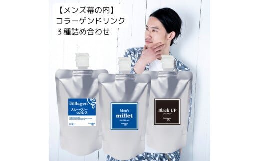 男性向けコラーゲンドリンク3種詰め合わせ【メンズ幕の内】 薄毛・白髪・眼精疲労 1本当たり約1ヶ月分|メンズミレット ブラックアップ ブルーベリー+カシス