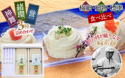 【極細そうめん 神舞(かみまい)】【細物そうめん 緒環(おだまき)】【標準そうめん 誉(ほまれ)】そうめんトリオ食べ比べセット!