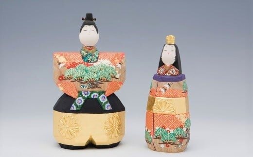 男雛 幅×奥行×高さ(cm) 約9.5×6×18 女雛 幅×奥行×高さ(cm) 約6.2×5.8×16 材質:楠 ※作品の取り扱いについて ・湿気の多い場所ではカビにご注意下さい。 ・展示の際には、ひび割れ防止のため、乾燥にご注意下さい。 ・保管の折には、なるべく布手袋で取り扱いをお願いいたします。その際、柔らかい筆で軽くホコリ取をして下さい。なお、水ふきは厳禁です。 |