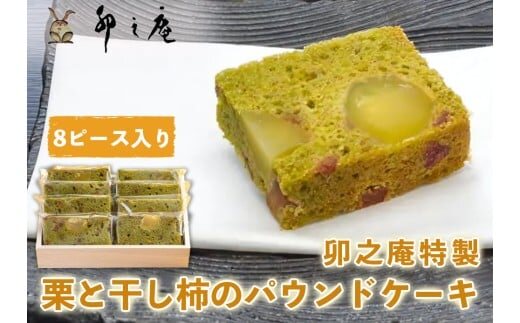 [卯之庵特製] 大和の里 栗と干し柿の抹茶パウンドケーキ (約50g×8ピース) [2205]