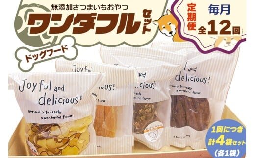 [定期便/12ヶ月] [ドッグフード] ワンダフルセット《無添加さつまいもおやつ (おいもチップス・干し芋スティック・皮付き干し芋・皮チップス 各1袋》|国産 ペットフード 芋 ペット用 ヘルシー 犬 猫 [3029]