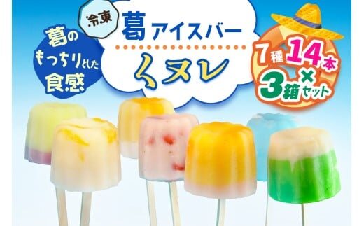 葛アイスバー くヌレ 3箱セット 計42本 (7種14本×3箱) [冷凍]|溶けないアイス 葛バー 葛キャンディ くず ギフト インスタ映え [3044]