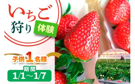 ■名称:いちご狩り体験チケット 子供1名様 ■対象期間:1月1日から1月7日 利用限定 ■対象品種:奈良のブランド (あすかルビー) |