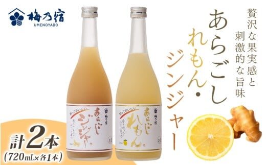 割って楽しむ あらごしジンジャー+あらごしれもん 720mL 2本 セット / 梅乃宿酒造 リキュール 国産 奈良県 葛城市【umyd024】