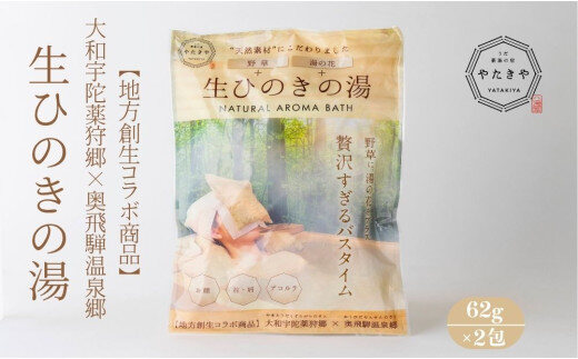 生ひのきの湯 入浴剤 (62g×2包) / ふるさと納税 入浴剤 ギフト プレゼント 疲労回復 個包装 コラボ 天然素材 桧 檜 湯の花 大和当帰 風呂 宇陀薬狩郷 奥飛騨温泉郷 父の日 奈良県 宇陀市 なつかしいみらいサービス やたきや