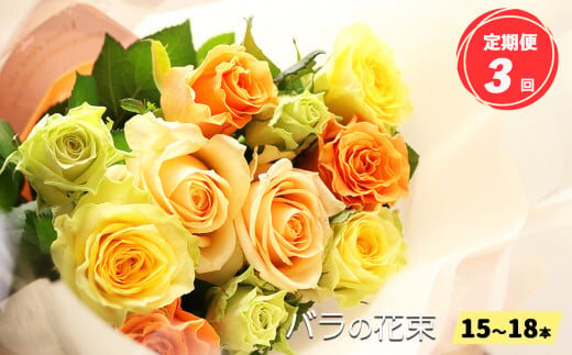 【 定期便 3回 】市場をはじめ愛好家から 高評価 バラ の 花束 ( 15~18本 ) ブーケ サイズ( 30cm 程度) | 花 薔薇 花束 ばら ローズ フラワー お花 新鮮 厳選 高品質 摘みたて こだわり 綺麗 平群のバラ 平群ブランド 誕生日 記念日 お祝い ギフト プレゼント ブランド 美しい 綺麗 HEGURI ROSE 奈良県 平群町