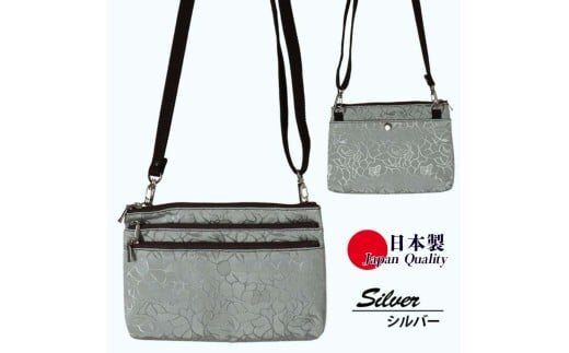 ・ローズ柄 シルバー ポシェット TJ-50 縦型 日本製 ミニショルダーバッグ レディース[1点]