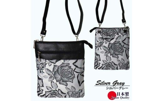 ・ローズ柄 シルバーグレー ポシェット BR-69 縦型 日本製 ミニショルダーバッグ レディース[1点]