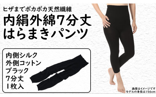 膝まで温かシルクとコットンのはらまきパンツ(7分丈)・ブラック///腹巻 お腹 冷え 冷え症 温活 暖か 温か シルク 綿 レディース ファッション インナー 保温 はらまき 無縫製 肌触り 日本製 奈良県 広陵町