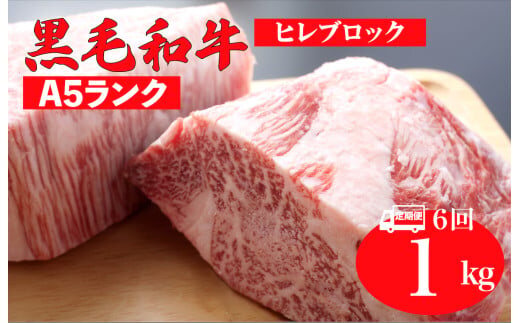 【全6回定期便】黒毛和牛 A5ランク ヒレ ブロック 1kg ソース付 和牛 冷蔵 冷蔵便 ブロック肉 牛肉 ヒレ肉 ヒレステーキ フィレ 1キロ 贈答 ギフト お中元