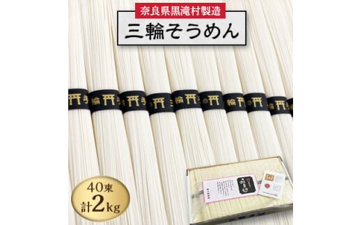 <完全手延べ>黒滝村発 手延べ三輪そうめん 2000g(50g×40束)_ そうめん 素麺 手延べ 三輪 麺類 乾麺 人気 おすすめ 送料無料 贈答 ギフト にゅう麺 三輪素麺 ブランド 【1229898】