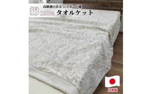 ■内容量・サイズ/加工地 高級ジャガード織りタオルケット シングルサイズ×ベージュ1枚 サイズ:約140×190cm 重量:約850g(1枚あたり) 生産国:日本 加工地:和歌山市 (和歌山市で行っている製造加工工程:縫製、検査、梱包、配送) ■原材料・その他 綿100% |