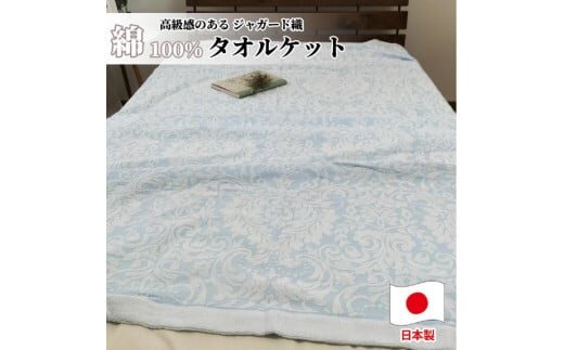 ■内容量・サイズ/加工地 高級ジャガード織りタオルケット シングルサイズ×ブルー1枚 サイズ:約140×190cm 重量:約850g(1枚あたり) 生産国:日本 加工地:和歌山市 (和歌山市で行っている製造加工工程:縫製、検査、梱包、配送) ■原材料・その他 綿100% |