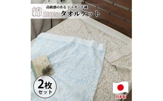 ■内容量・サイズ/加工地 【2枚組】高級ジャガード織りタオルケット シングルサイズ×1セット(ベージュ1枚・ブルー1枚) サイズ:約140×190cm 重量:約850g(1枚あたり) 生産国:日本 加工地:和歌山市 (和歌山市で行っている製造加工工程:縫製、検査、梱包、配送) ■原材料・その他 綿100% |