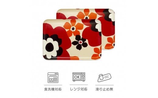 ・1枚あたり 幅33×奥行き23×高さ1.5cm 重さ340g ・内寸 幅29.5×奥行き20cm 【原材料名】 不飽和ポリエステル樹脂 【お取り扱いに関する注意事項】 ・この製品は、家庭用の電子レンジ、食器洗い乾燥機に対応しております。業務用の機器には対応しておりません。詳しくは、貼付の品質シールをお読み下さい。 ・電子レンジでお使いの際は、1000W1分以内か、600W3分以内でご利用下さい。 ・トレーが長方形の場合、庫内でテーブルが回転するタイプの電子レンジにはご利用頂けません。 ・食器洗い乾燥機で洗浄される際、食器の下に置いたり、無理に押し込んだりすると変形したり割れる事があります。余裕をもって入れて下さい。 ・布地の持つ柔軟性の特性上、絵柄に若干の歪みやシワが生じていることがございますが、使用上問題ございません。予めご了承下さい。 ・布地を一枚一枚成形していますので、お届けする製品によって絵柄の位置や風合いが多少異なります。 ・製品の色は、お使いのブラウザやモニターによって実際の色と若干異なる場合がございます。ご了承下さい。 |
