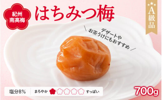 紀州南高梅 はちみつ梅干し (塩分8%)700g A級品 / 梅干し 梅干 梅 和歌山 梅干し 田辺市 紀州南高梅 南高梅 はちみつ使用 はちみつ梅 肉厚 お米 おにぎり 焼酎 梅酒 健康 はちみつ梅 塩分8% 塩分控えめ【ske007-1】