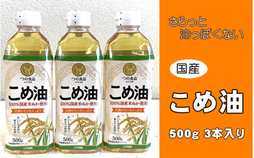 こめ油 500g×3本 八十八屋【順次発送】【こめ油 米油 食用 料理用油 調理用油 こめあぶら 揚げ物 天ぷら オイル 築野食品 健康 お米 ギフト 贈答用】