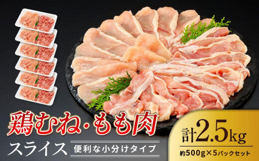 鶏もも 鶏むね 2.5kg セット 500g × 5パック ( 鶏もも 鶏むね 各250g入 ) 【スライスカット済】