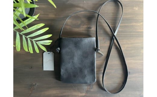 植物タンニン鞣し 本革 サコッシュS 【ブラック】