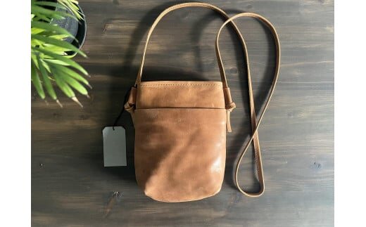 植物タンニン鞣し 本革 サコッシュL 【キャメル】