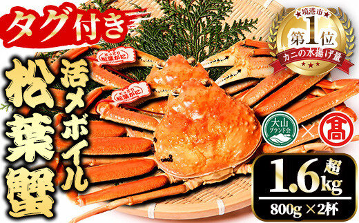 <平日着※指定日不可><11月中旬~2月下旬発送予定>【タグ付き】活〆ボイル松葉蟹2杯セット(大・800g以上×2杯)【T-DT4-A】【大山ブランド会】