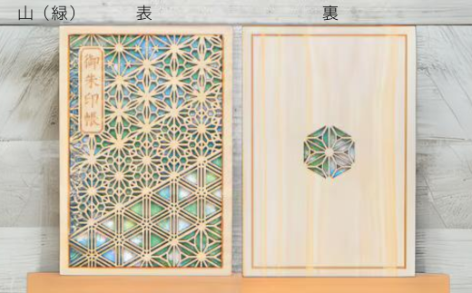T1-4-4 智頭杉の木製御朱印帳/ 山(緑)(カバー付き)