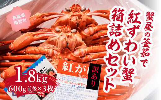 【北海道・沖縄・離島配送不可】【訳あり】蟹屋の釜茹で紅ずわい蟹1.8kg箱詰めセット 600g前後×3枚 ベニズワイガニ 紅ずわいがに カニ かに 境港 マルツ ボイルズワイガニ (MR05)