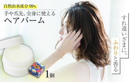 自然由来成分99%を誇るヘアバームで、残りの1%は心を魅了する香り成分。防腐剤、エタノール、合成着色料、鉱物油、シリコン不使用の5つのフリーで安心して使えます。