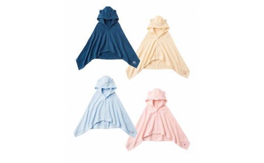 スナップを留めるとポンチョ型になり、お風呂あがりやプールの際に大活躍のバスタオル。