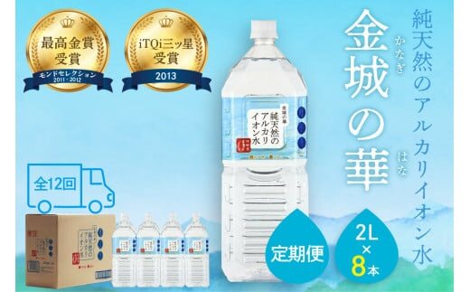純天然のアルカリイオン水 金城の華(2L×8本)1箱×12回 初回のみ7年保存水(2L×6本)一箱を同梱 |