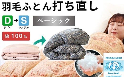 羽毛布団 打ち直し ダブル掛け1枚→シングル掛け1枚 【ベーシックコース】 冬用 綿100% リフォーム