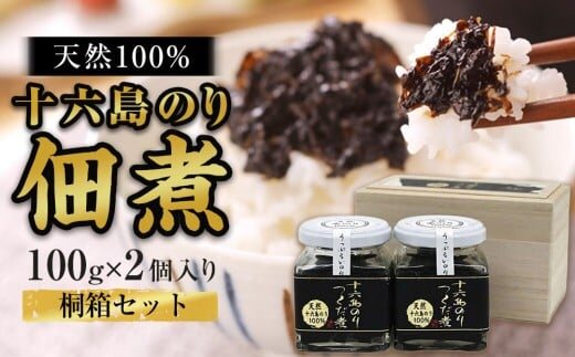 十六島のりの佃煮 2本 100gを2本、木箱に入れて配送します。 |
