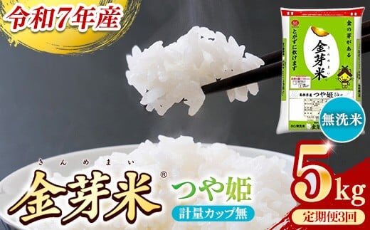 BG無洗米・金芽米つや姫 5kg×3ヵ月 定期便【毎月】計量カップ無し【令和7年産 時短 健康 特別栽培米 うまみ 甘み 栄養 おいしい 粒ぞろい ふっくら ビタミン ミネラル 島根県 安来市】