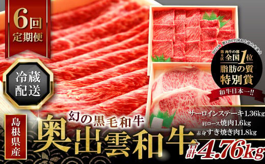 【冷蔵配送】全国大会W受賞!奥出雲和牛いろいろガッツリ定期便6回(毎月23日お届け)【牛肉 定期便 6回 サーロインステーキ 肩ロース焼肉 赤身すき焼き肉 ステーキ すき焼き 焼肉 人気 冷蔵 国産 奥出雲和牛 黒毛和牛 ブランド牛 贅沢 お祝い 贈り物 プレゼント ギフト】