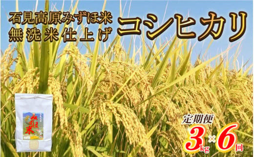 【定期便】令和7年産! 石見高原みずほ米コシヒカリ 無洗米仕上 3kgx6回