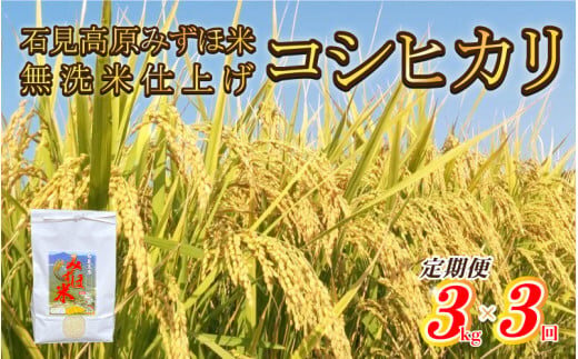 【定期便】令和7年産 石見高原みずほ米コシヒカリ 無洗米仕上 3kgx3回