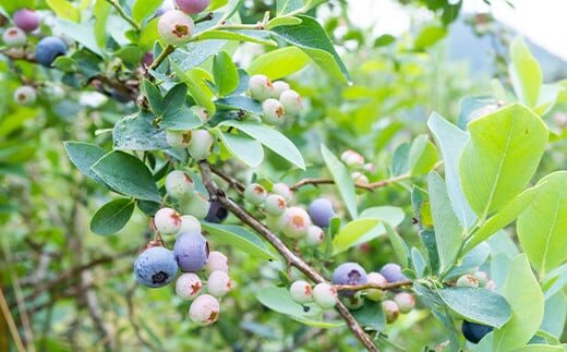 津和野でブルーベリーファームを営んで15年。皮ごと味わう果物だからこそ、栽培期間中は農薬や化学肥料を一切使わないものを、と思って栽培していますが、もともと農園の環境がいいので虫の影響が少ないうえ、町でも一番陽が長く当たる南側の山の麓にあるため、年々木々も成長し、味もよく、美味しくなってきたように感じます。しかも、津和野の特徴である寒暖差が、糖を閉じ込め甘くなるのも特徴です。