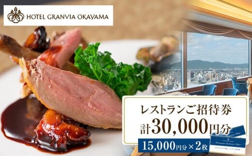 ホテルグランヴィア岡山 レストランご招待券 15,000円分×2枚(ランチ/ディナー) ※ホテル内飲食店3店舗にてご招待券専用ランチorディナーメニューをご用意 岡山市内提供(5条7号) |