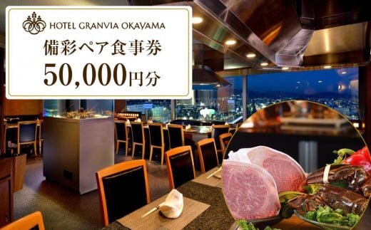 ホテルグランヴィア岡山 備彩ペア食事券 50,000円(ランチ/ディナー、ペア) ※鉄板焼 備彩にてご招待券専用のランチメニューをご用意 岡山市内提供(5条7号) |
