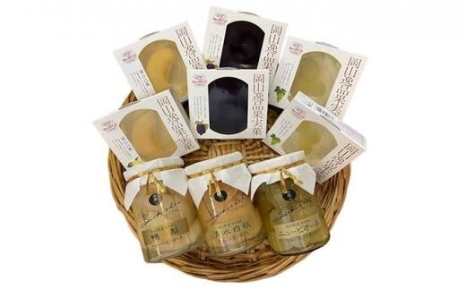 岡山を代表するフルーツをあっさりとした特製シロップに漬け込んだ瓶詰とコンポートが入ったボリューム満点のフルーツゼリーを詰合せました。